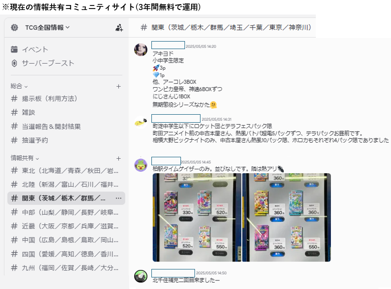 3年間無料で運営している情報共有コミュニティサイト!ポケモンカード販売店でのパック販売状況の共有から限定グッズなど、ポケモン好きの方への情報をまとめて発信!フリートークなどではグッズ関連、デッキに関する話題などもしており、リアルタイムで各地方でのポケモンカード販売情報を共有!コミュニテイでは実際に今まで買えなかった人達も「買えるようになった!」等の嬉しい声も多くでています!そのコミュニティを、2025年5月末にトレカ総合サイト【LHUB(ルーブ)】へ移行します!