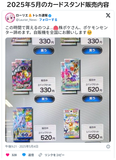 公式サイトでは、ポケスタの設置場所や新商品の情報が定期的に更新されていて、ファンにとって頼りになる情報源になっています。一方、ネット、特にX(旧Twitter)を見ると、ポケスタの話題で盛り上がってるのがよくわかります。ゲリラ販売の情報が流れると、「この場所でレアパック売ってました!」とか「補充されたから急いで行ってきた!」など投稿が多くみられ、いつも話題となっています!